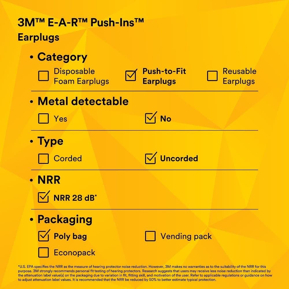 Home > Shop > 3M, Eye & Ear Protection, Ear Plugs > 3M™ E-A-R™ Push-Ins™ Earplugs, Poly bag, Uncorded, 100 Pair/Box | 318-1000
