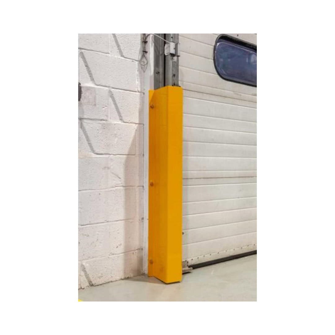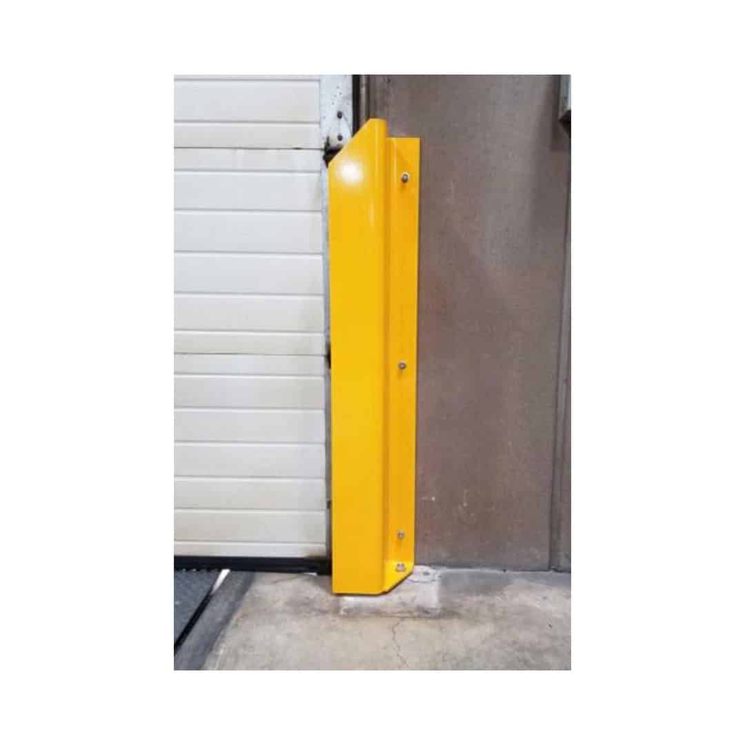 Specialized door track guard protection against impacts as a result of forklift operations and other heavy duty equipment.