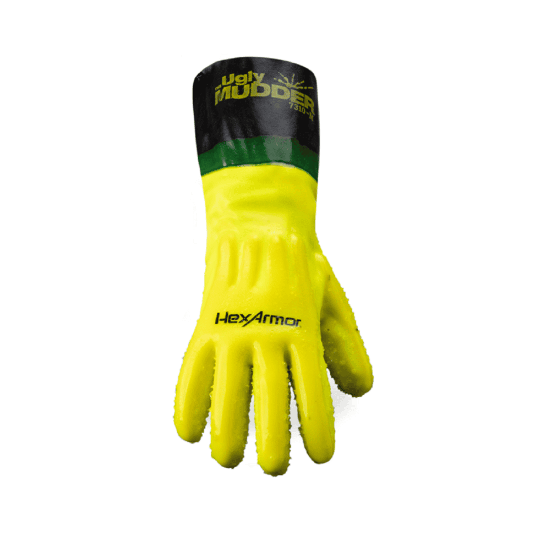The HexArmor® Ugly Mudder® glove 7310 relies on a premium PVC-Nitrile dip to create the most durable lightweight, liquid resistant glove on the market.